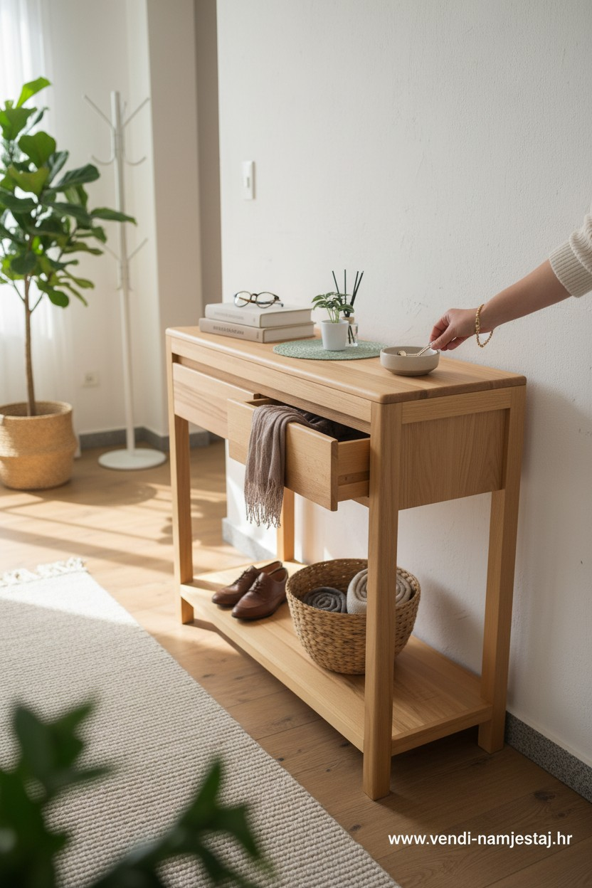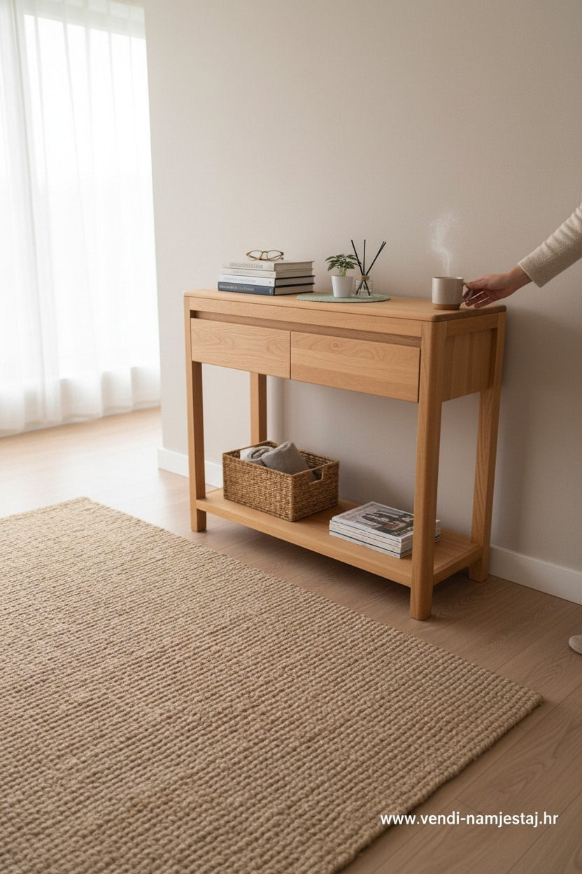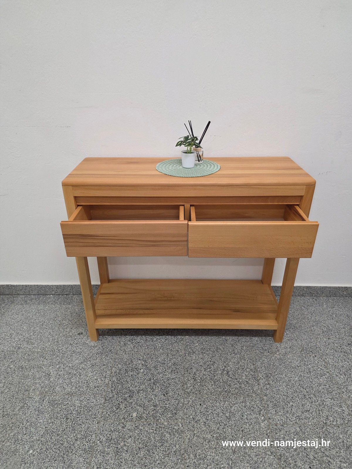 Komoda / polica 2 ladice, bukva puno drvo, NOVO